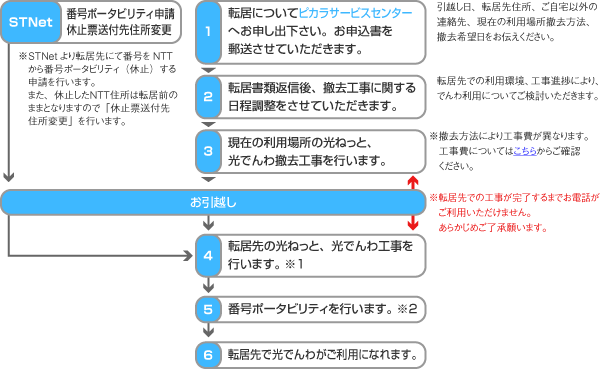 ここではNTT固定電話の移転工事なしで、利用していた電話番号をポータビリティして、光でんわで同じ番号を継続使用する場合の手続きの流れを説明します。
